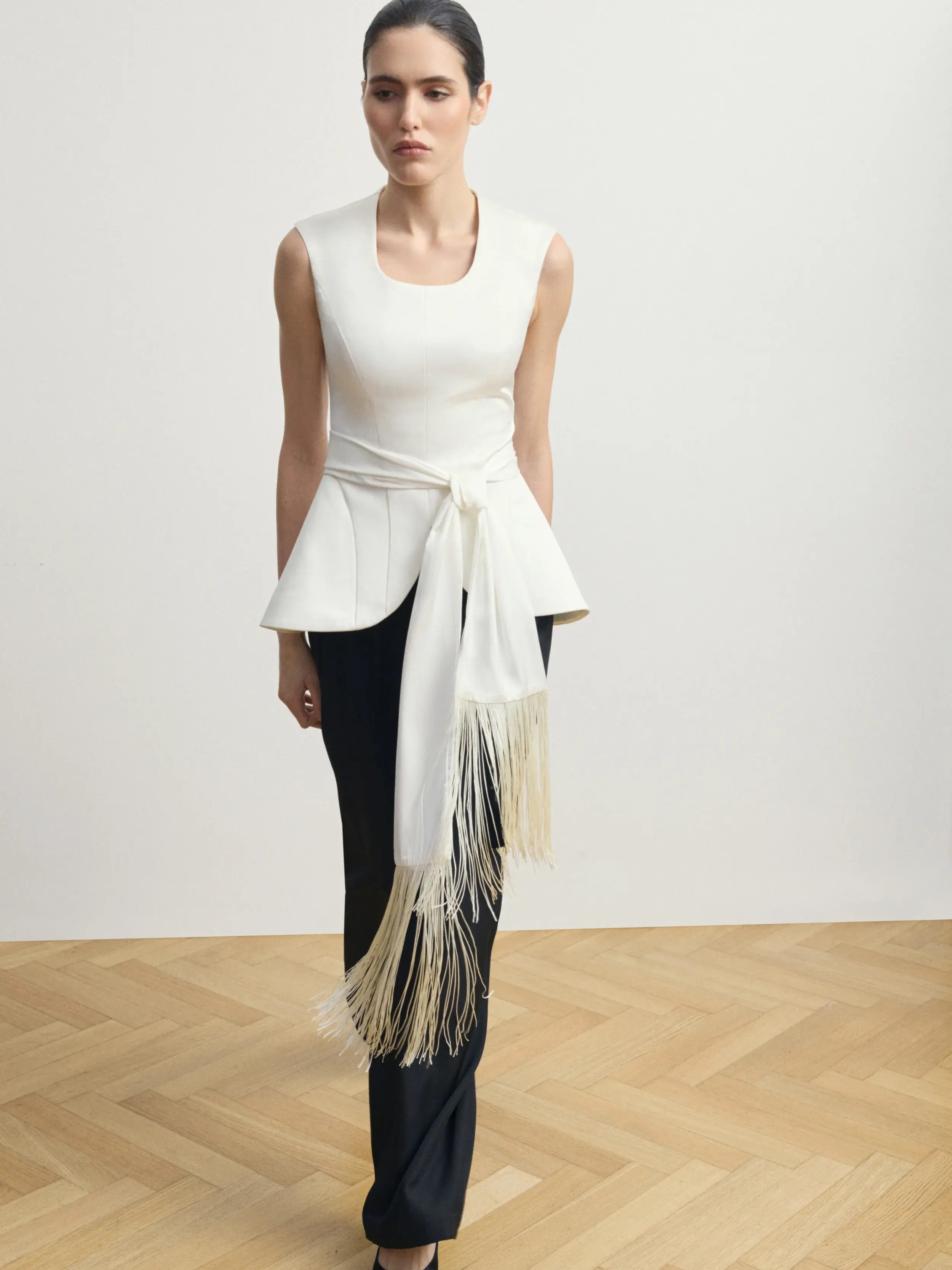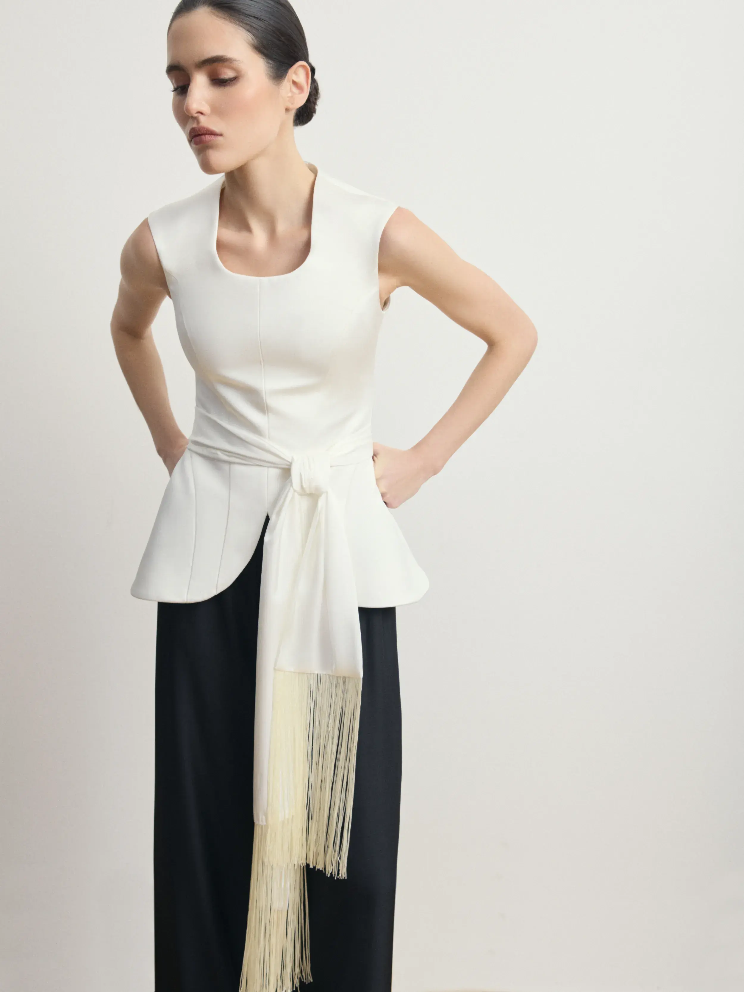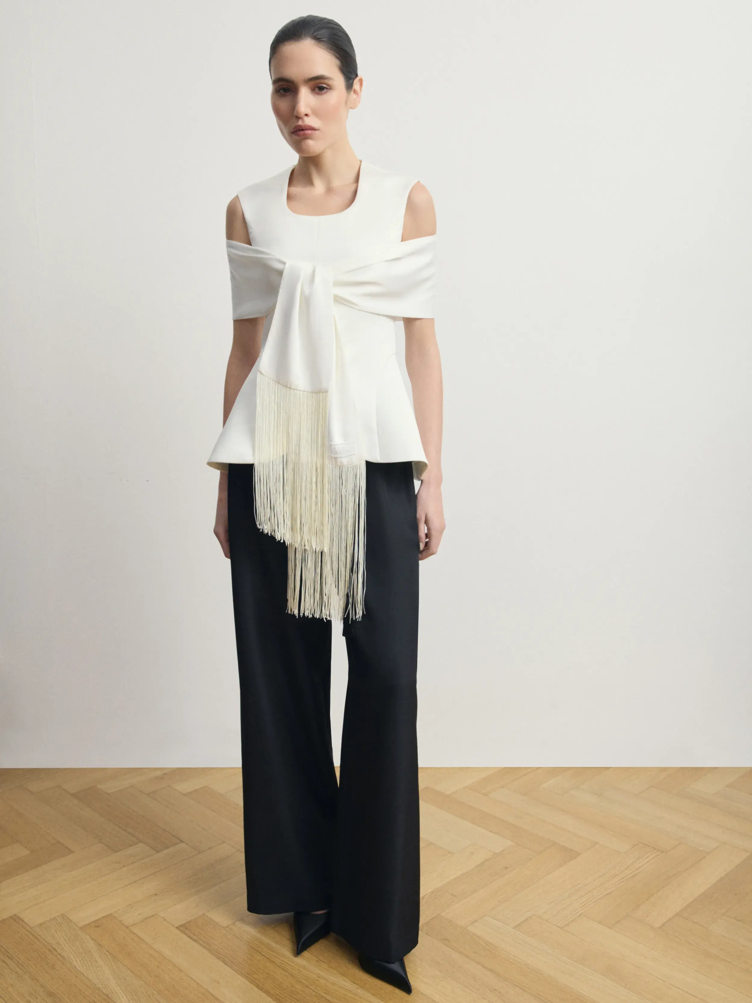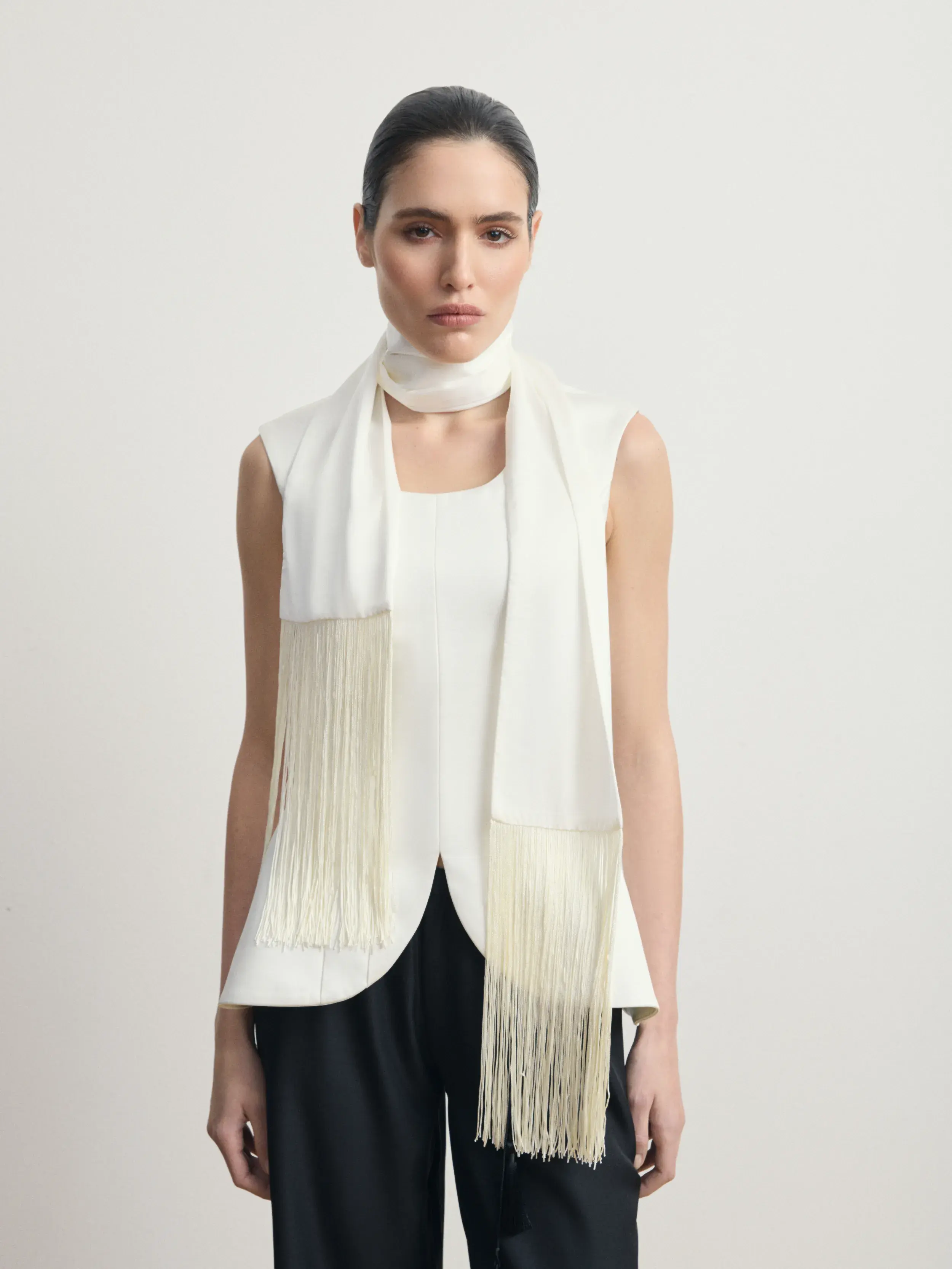Атласный шарф с бахромой "Lune Satinée" молочный