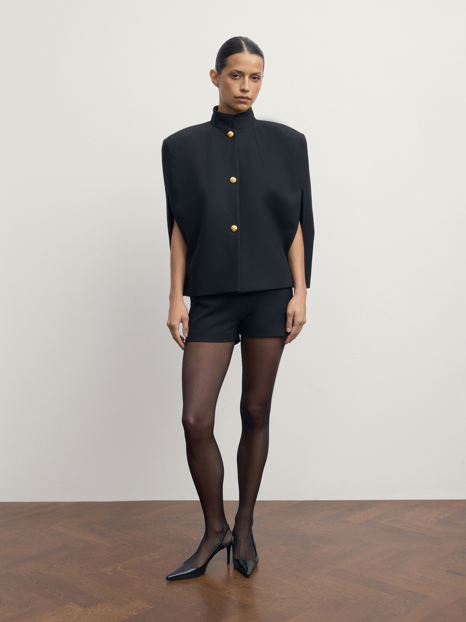 Элегантные и универсальные шорты Vintage с высокой посадкой, выполненные из плотной костюмной ткани. Лаконичный силуэт и минималистичный крой подчеркивают фигуру и идеально сочетаются с кейпом Vintage, а так же легко сочетаются как с деловыми рубашками, так и с повседневными топами.